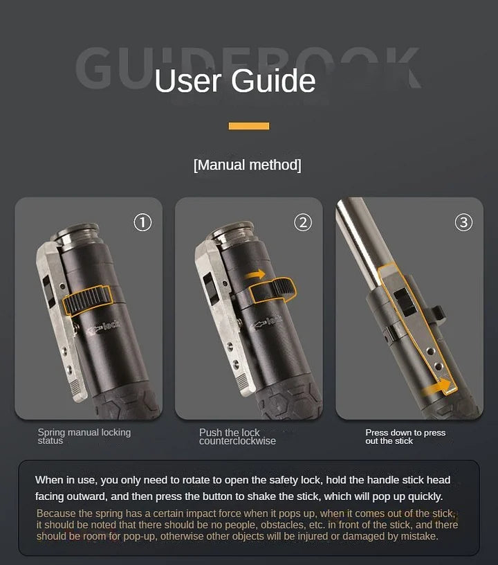 - Innovative Spring Mechanism: Featuring an innovative spring mechanism, simply press the button to deploy the baton instantly, allowing for quick and easy access even in confined spaces.